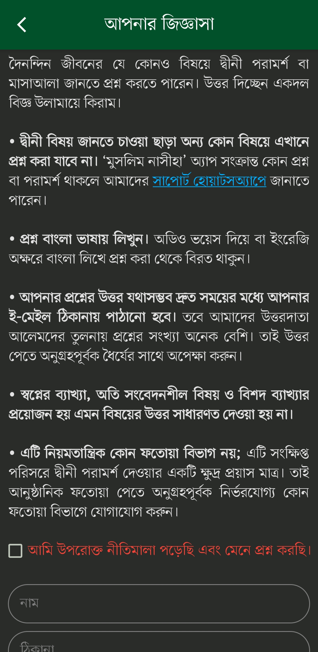 Connect directly with Islamic scholars through integrated WhatsApp groups for your questions.
